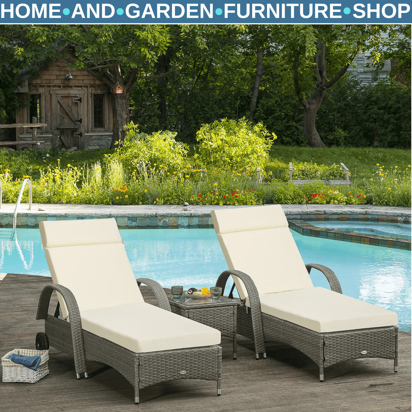 Set Of 2 Sun Lounger Cushions For Rattan Furniture With Ties Replacement Beige